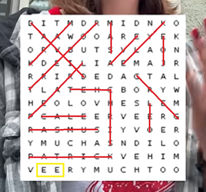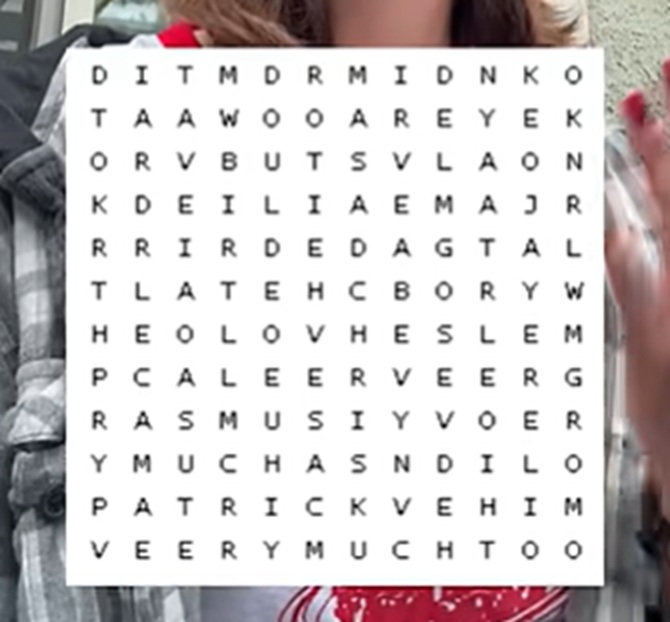 Alex claims all of their exes’ names are concealed in this grid, and if you find all of them, you’ll get a secret message.