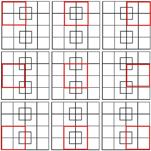 Within that 4×4 square are 4 3×3 squares: