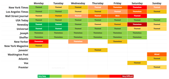 In that post, we shared Lloyd Morgan’s crossword difficulty matrix, a cart that allows new and unfamiliar solvers to seek out different venues based on their difficulty, ensuring they can ease into crosswords and not immediately get discouraged by a puzzle tougher than they’re ready for.