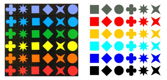 Although there’s no official colorblind-friendly edition of Qwirkle on the market, there is a colorblind-friendly version of the game that has been shared online. The color palette is more accessible, and instead of black tiles, the base tiles are gray.