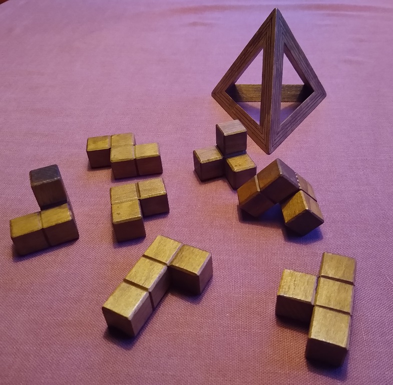 I found disassembling the puzzle relatively easy, and I enjoyed maneuvering the pieces out of the surprisingly small gaps in the triangular frame.
